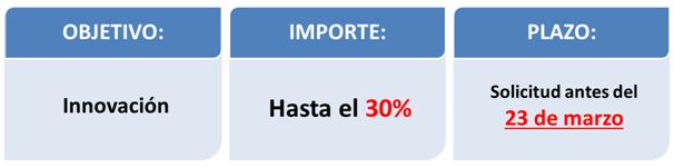 En este sentido y como les indicábamos, hasta el 23/03/2018, está abierto el plazo para la Solicitud de Ayudas, de hasta un 30% de Subvención a fondo perdido, para este tipo de Asesoramiento y Acompañamiento.