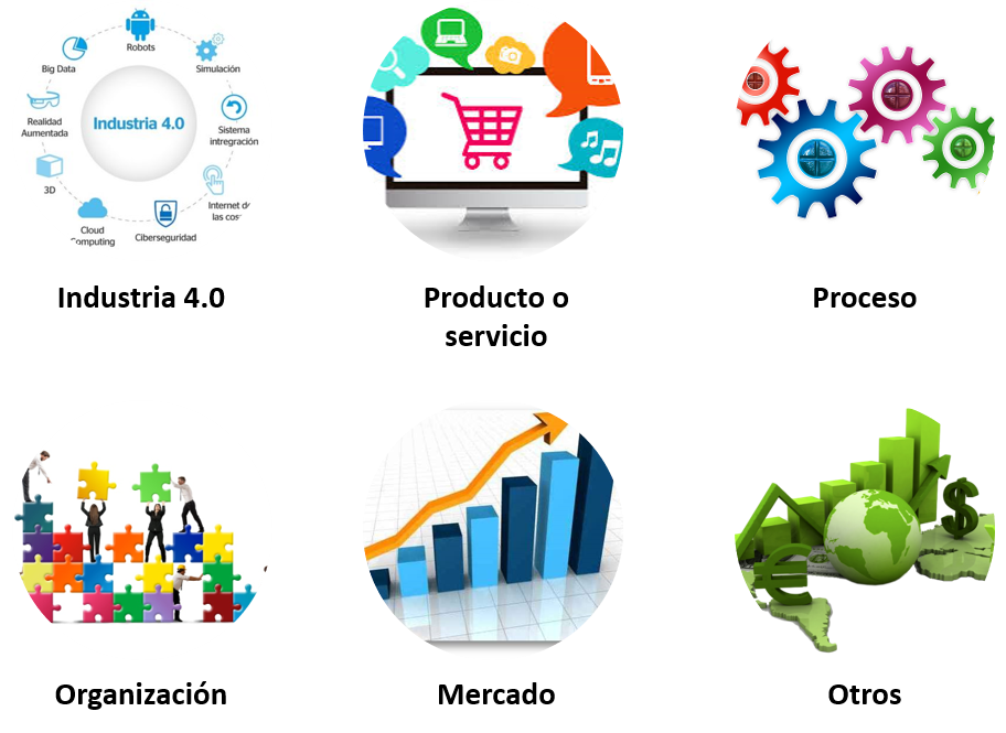 Actuaciones que se encuadren dentro de las siguientes actividades innovadoras: Industria 4.0, innovación en producto o servicio, en procesos productivos, en organización y en marketing y mercados.