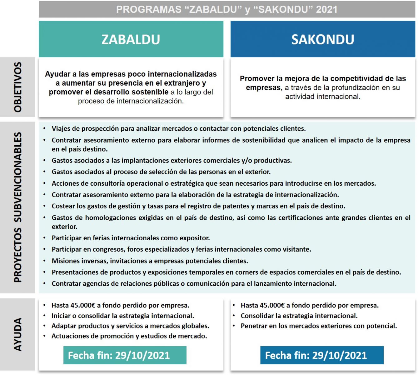 Le informamos sobre los nuevos Programas de ayudas "ZABALDU" y "SAKONDU" 2021, para la internacionalización de las PYMEs: