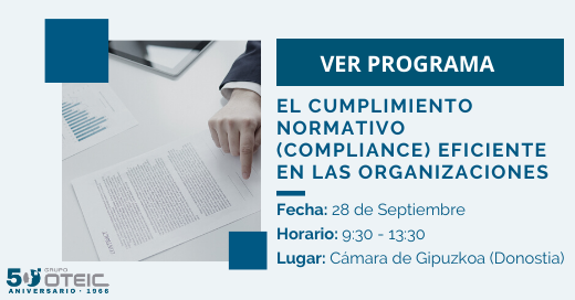 Asimismo, GRUPO OTEIC le invita a asistir a la JORNADA “EL CUMPLIMIENTO NORMATIVO (COMPLIANCE) EFICIENTE EN LAS ORGANIZACIONES”, que organiza junto a CÁMARA DE GIPUZKOA, dirigido a Administrador@s y Consejer@s, con el objeto de trabajar con la máxima practicidad para conseguir Evolucionar la Organización, o Grupo, a través del Compliance.