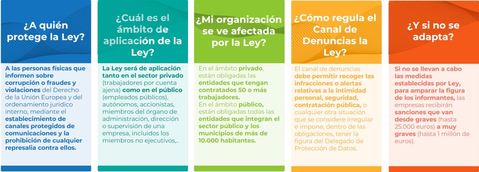 El objeto principal de la Ley es proteger a todas aquellas personas que informen sobre corrupción o fraudes y violaciones del Derecho de la Unión Europea y del ordenamiento jurídico interno, mediante el establecimiento de canales protegidos de información y la prohibición de cualquier represalia contra ellas.